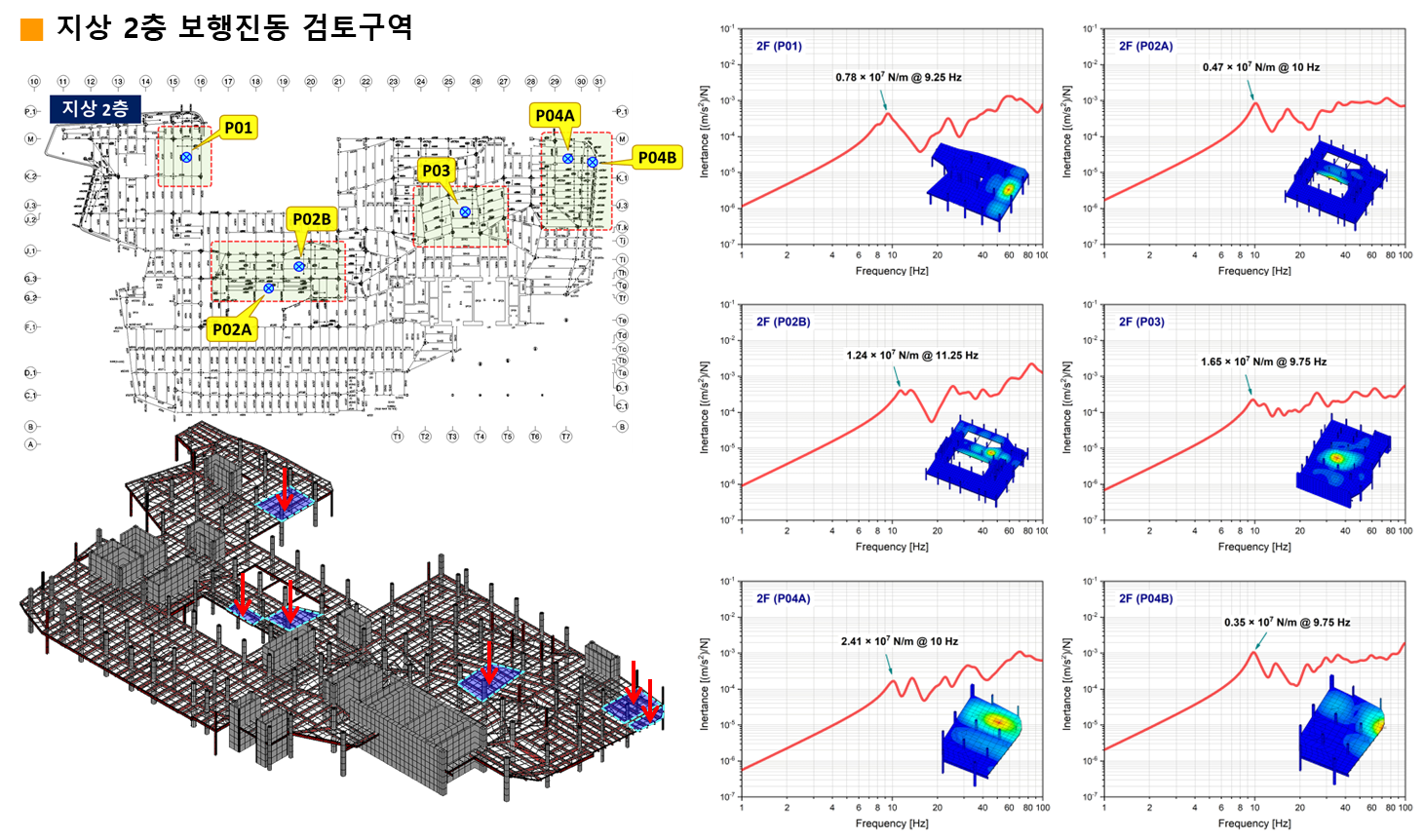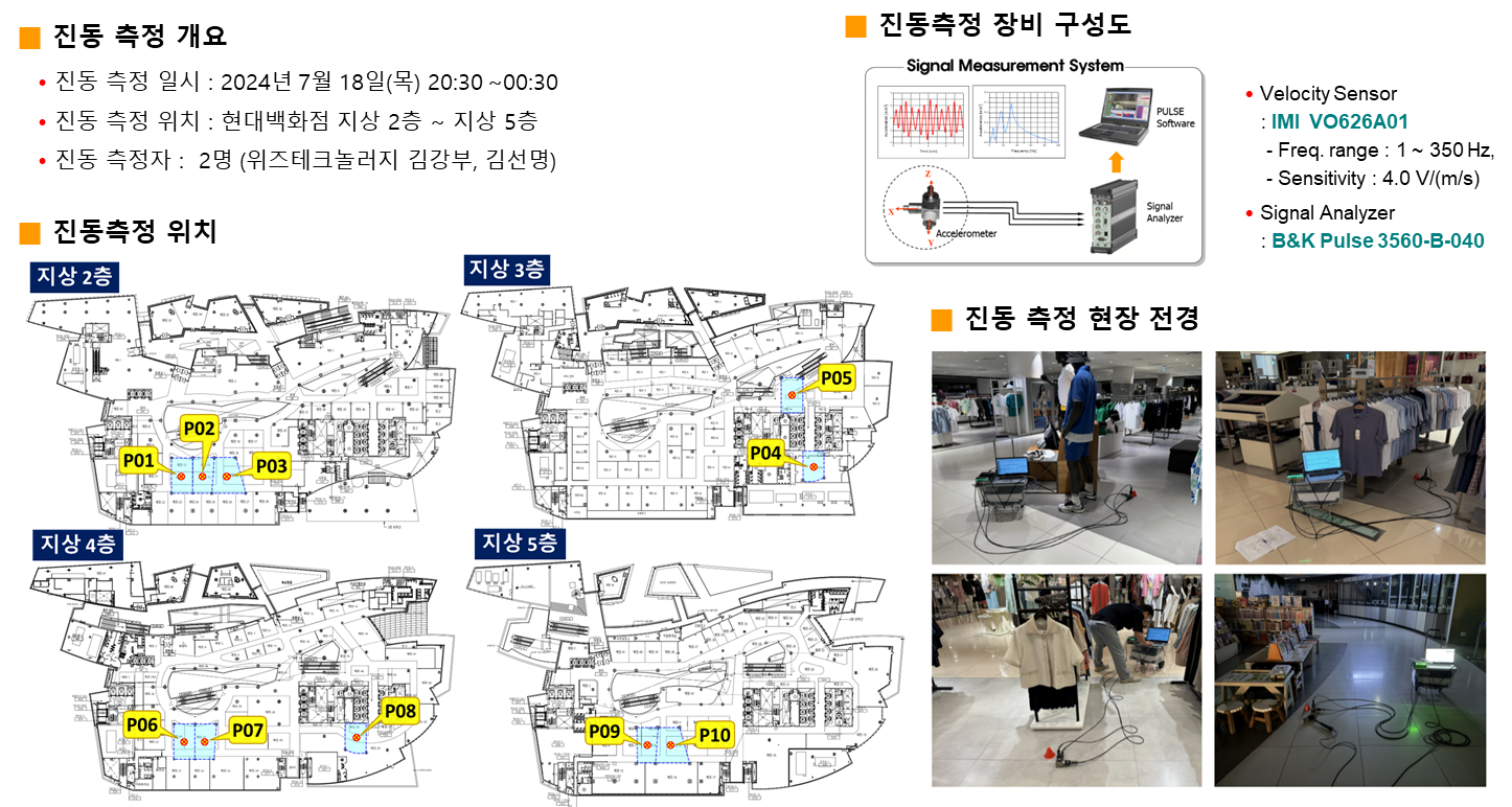 ▶ H 백화점 리모델링 사업 설계용역과 관련하여 신설 보강구역에 진동평가를 실시함.